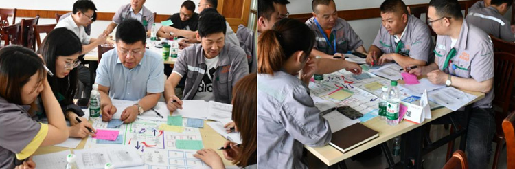 بعد التعلم المنهجي ، قام السيد تشونغ جي بتنظيم المتدربين للتفاعل من خلال العزف على "تمرين الجنة المصنع الرملية" ، بهدف تعزيز وعي الموظفين والقدرات التشغيلية العملية المتمثلة في تقليل التكاليف وتحسين الكفاءة من خلال محاكاة بيئة إدارة الإنتاج الحقيقية.