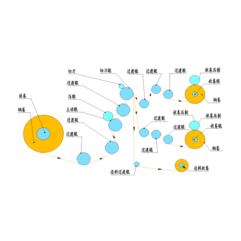 يتمثل مبدأ العمل في آلة التزحلق إلى قطع لفة كبيرة من رقائق النحاس في الحجم والعرض المطلوبين من خلال سلسلة من العمليات. خطوات العمل هي كما يلي: